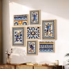 Set of 7 Indian Wall Art Prints of Blue Birds with Flower Ritual theme Framed Vintage Poster