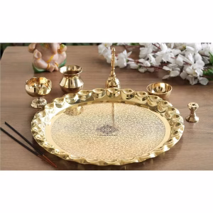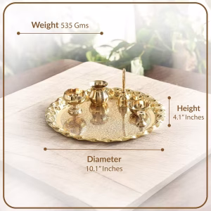 Be the first to review “Pure Brass Pooja Thali Set with Floral Vines Embossed Design, Religious Spiritual Item, Home Temple, DIameter-10.1″ Inch” Cancel reply