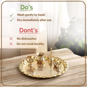 • 🪔 In this puja thali, you can very easily arrange diya, nariyal, puja flowers, haldi, kumkum, akshata, rakhi etc. One of the good surprise option for any occasion like wedding, return presents, corporate, housewarming party, ideal gift for diwali and other festivals like makar sankranti , pongal , anniversary , puja etc. Very economical, yet elegant choice