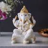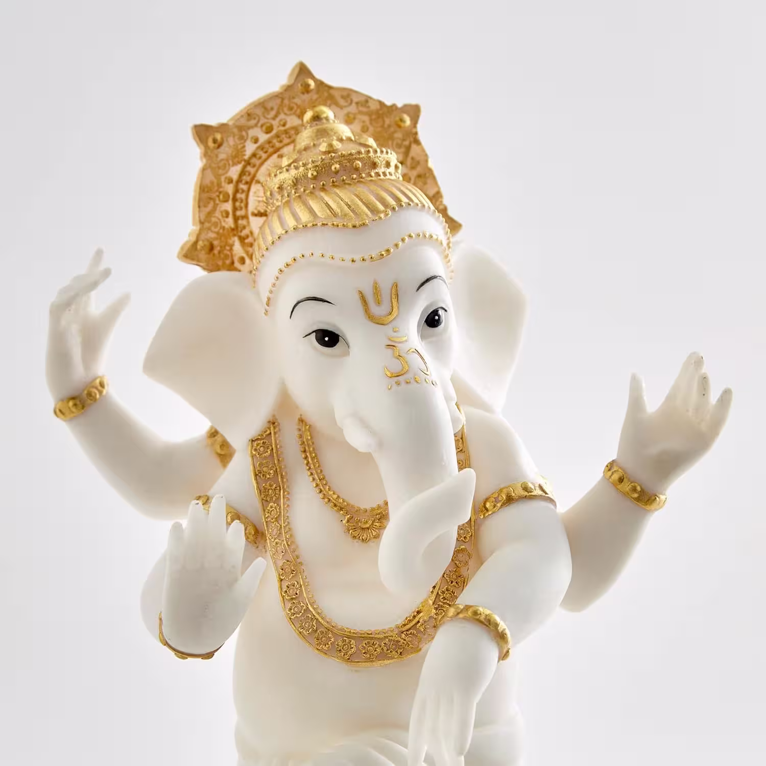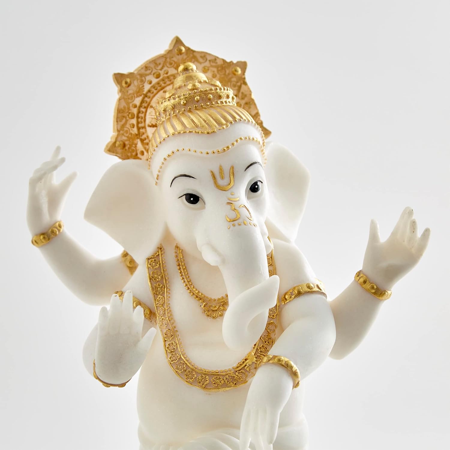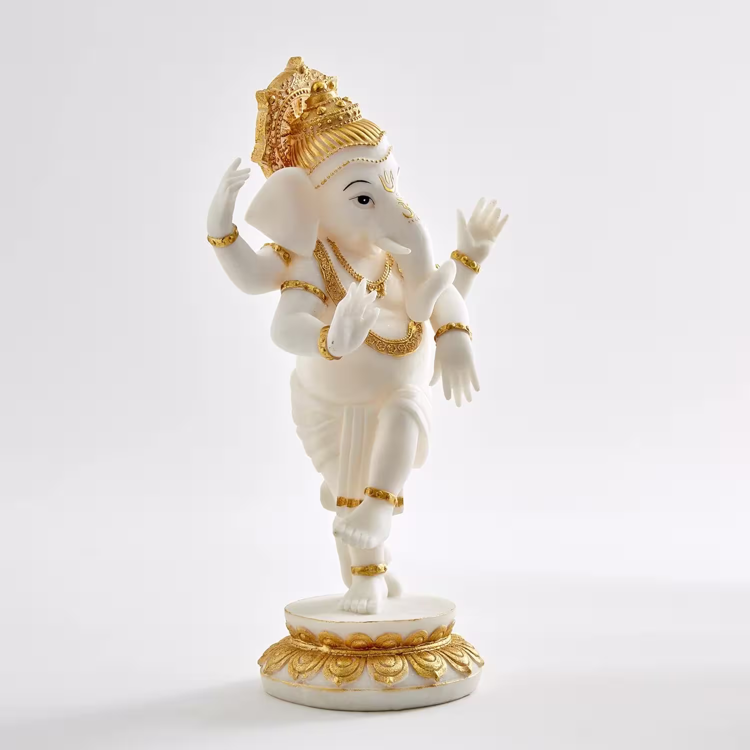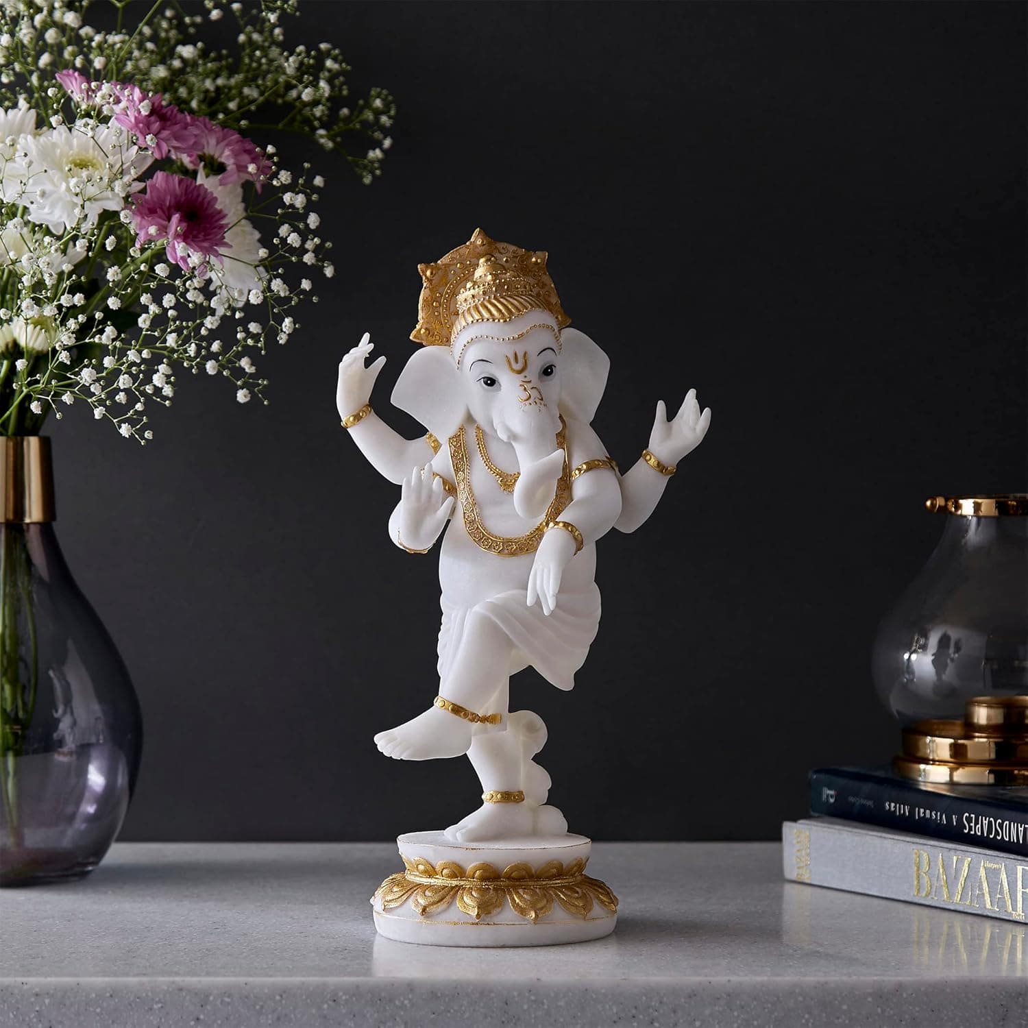 White Textured Polyresin Dancing Pose Ganesha Figurine
